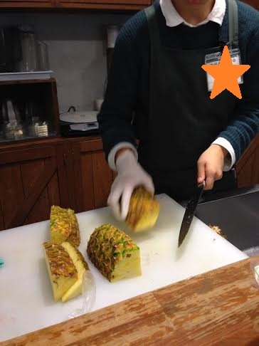 写真はパイナップルを切ってこの後、ジャムを作るところです。