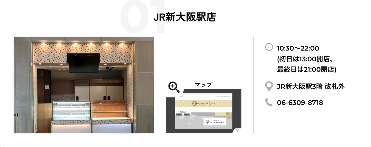 10月17日(金)から30日(木)まで、新大阪駅3階にあります、エキマル・ア・ラ・モード新大阪店に期間限定の催事出店をいたします♪