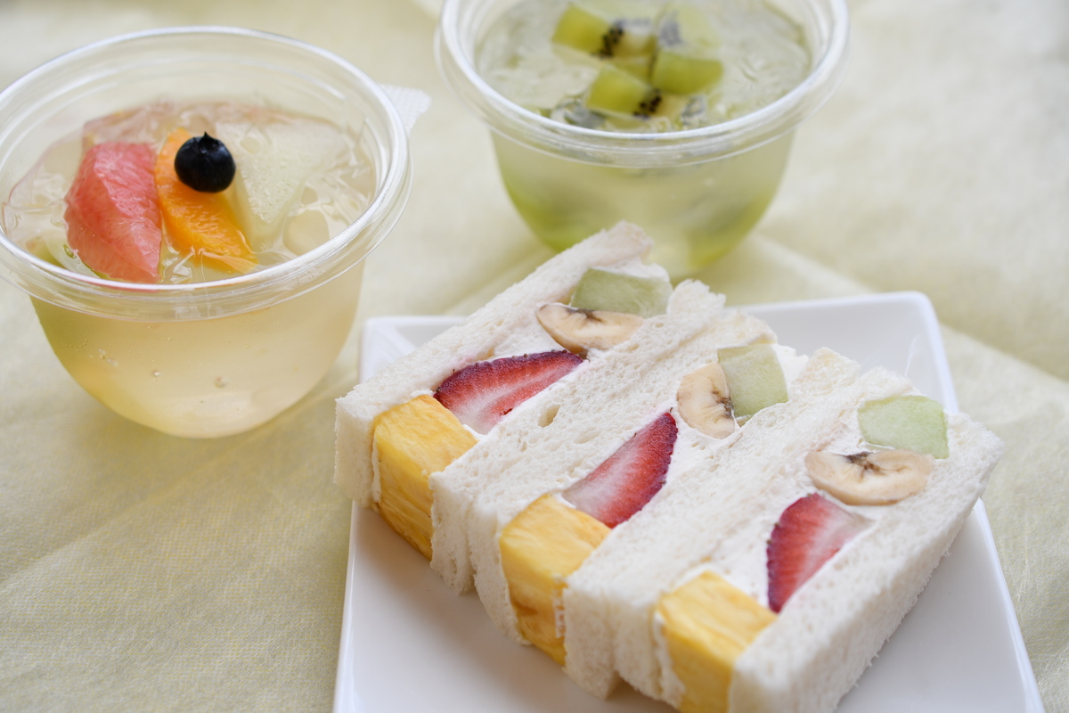 当店人気のフルーツポンチゼリーやフルーツサンドをはじめ、旬の果物、柿・梨・シャインマスカットを使た商品もあります(*^-^*)