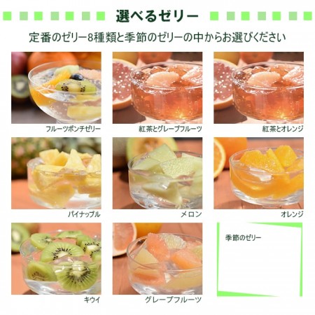 お土産やご自宅用で非常に喜ばれています! フレッシュな果物が入ったゼリーを自由にお選びいただけます。 【内容】 【定番ゼリー】フルーツポンチゼリー・紅茶とオレンジゼリー・パイナップルゼリー・メロンゼリー・オレンジゼリー・キウイゼリーの8種類に季節のフルーツゼリーの中でお選びいただけます。 ※季節のフルーツゼリーは販売がない場合もございます。 ※季節のフルーツゼリーのいちごゼリー、桃ゼリー、シャインマスカットゼリー、マンゴーゼリー、さくらんぼゼリー、赤肉りんごゼリー、チェリーゼリーは1個につきプラス160円が別途必要となります。 ※追加料金が発生するゼリーを選んだ場合は後で手動で金額を変更させていただきます。 【商品詳細】 フルーツポンチゼリーは開店以来20万個を売り上げた、当店の大人気商品! やわらかチュルン♪の食感と、プロが選んだ新鮮な果物が人気の秘密! 果物屋さんだからこそ作れるこだわりのゼリーです。 全てのフルーツゼリーは【製造日から4日間が消費期限】となりますので、あらかじめご了承下さいませ。 包装が必要な場合は「包装有り」をお選びください。包装無しの場合は専用箱に直接茶色の包装をさせていただきます。 各種お熨斗にも対応いたしますのでお気軽にお申し付けくださいませ。 上本町本店 TEL 06-6191-6450 メール info@fruit-garden.net 【送料について】 沖縄・北海道・一部の離島の方は別途1,000円かかります